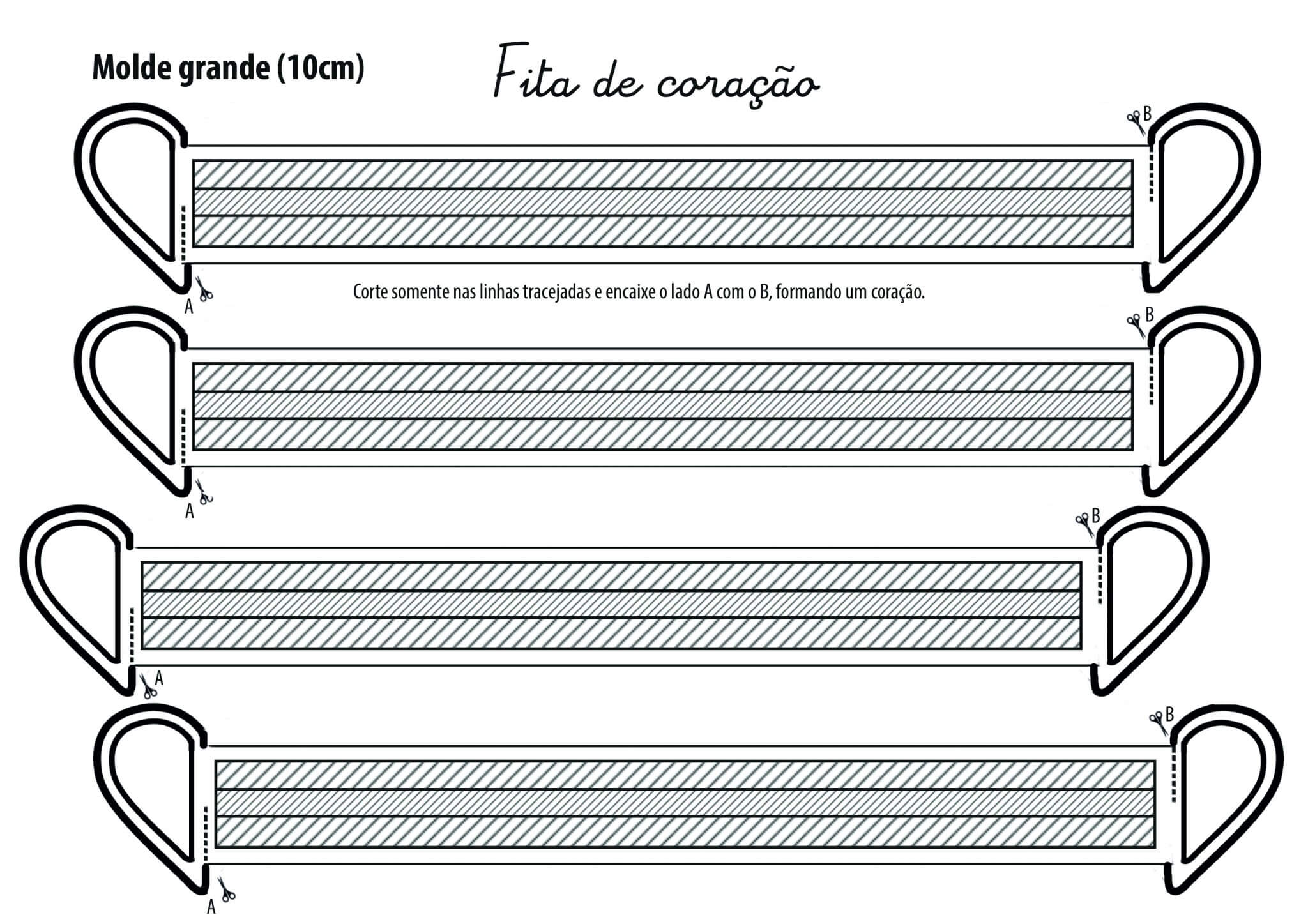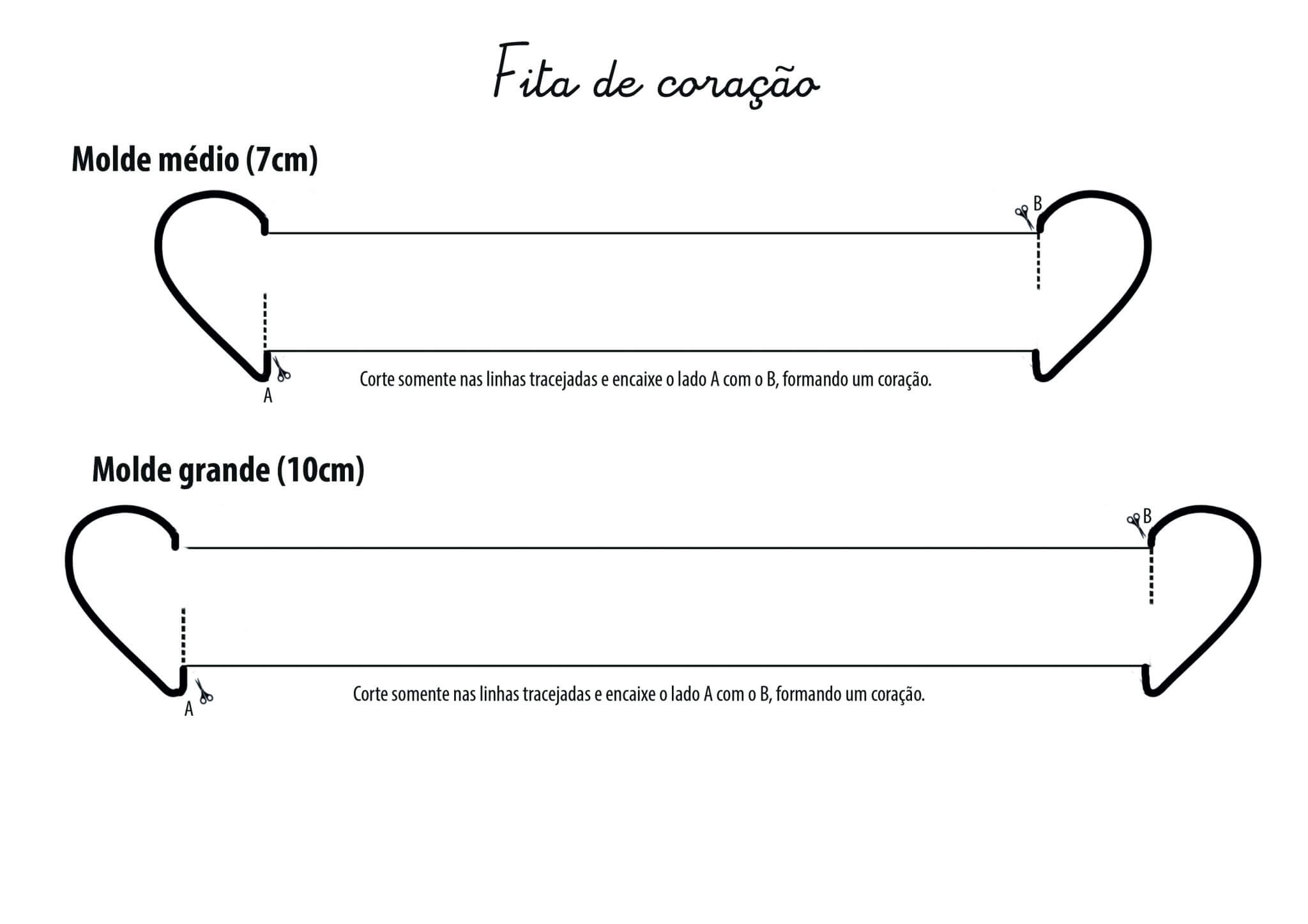 Para terminar este presente lindo de Dia das Mães, a Patricia fez uma embalagem em forma de coração super simples. Você pode baixar o arquivo do molde aqui, além de duas versões da fita para colorir em tamanho médio (aqui) e grande (aqui). Depois, imprima num papel mais durinho (com gramatura de ao menos 180grs), no formato A4. Você também pode imprimir em papel comum e transferir, com um lápis, o desenho para um papel cartão ou cartolina.